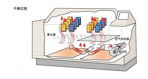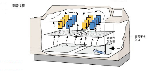 借空气挤压将雾气排出,箱盖为锥形设计,成120℃顶角,有利于盐雾产生的液滴不直接滴落在试样上,保证了试验的准确度